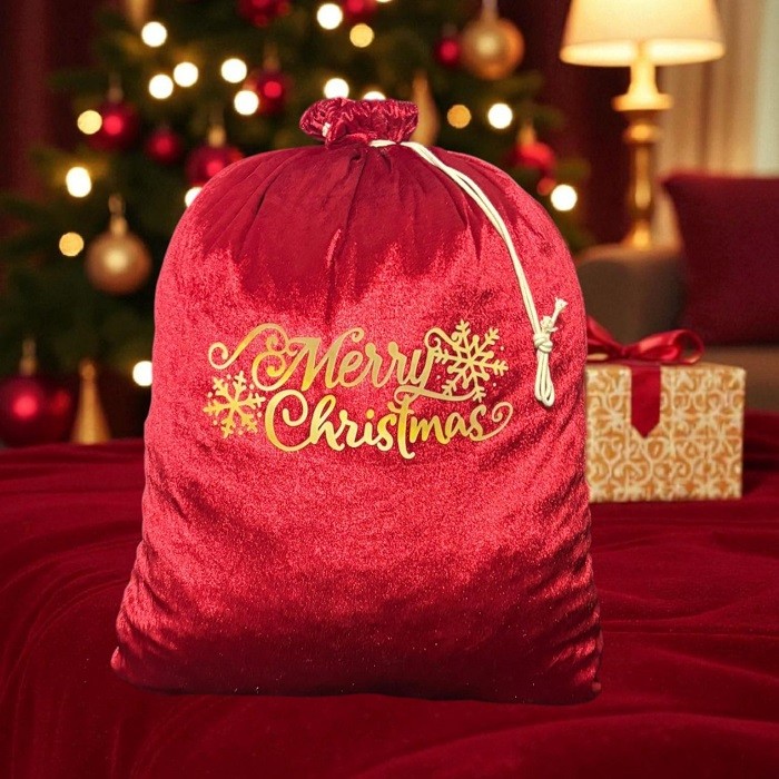 Baskılı Noel Baba Hediye Dağıtım Çuvalı 50x70