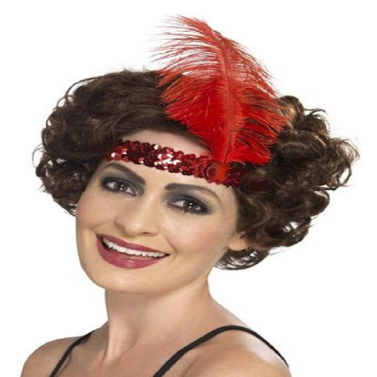 Çarliston Saç Bandı Kırmızı Renk Tüylü