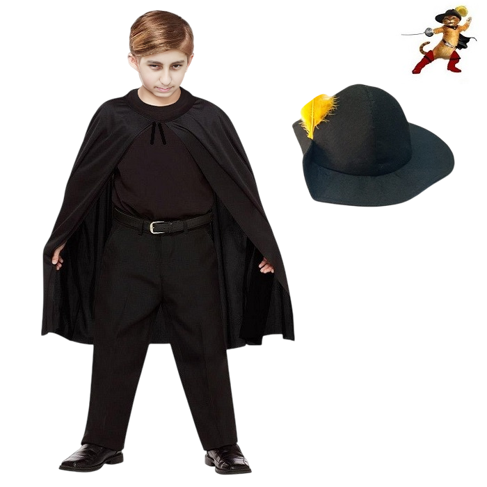 Çizmeli Kedi Şapka Pelerin Set Çocuk