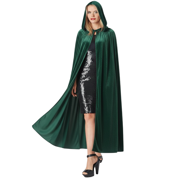 Kapüşonlu Kadife Pelerin Yeşil 125 cm