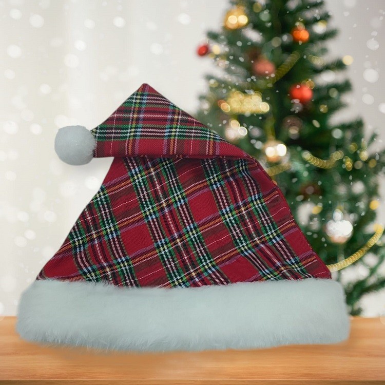 Noel Baba Şapkası Ekose Kumaş Yetişkin
