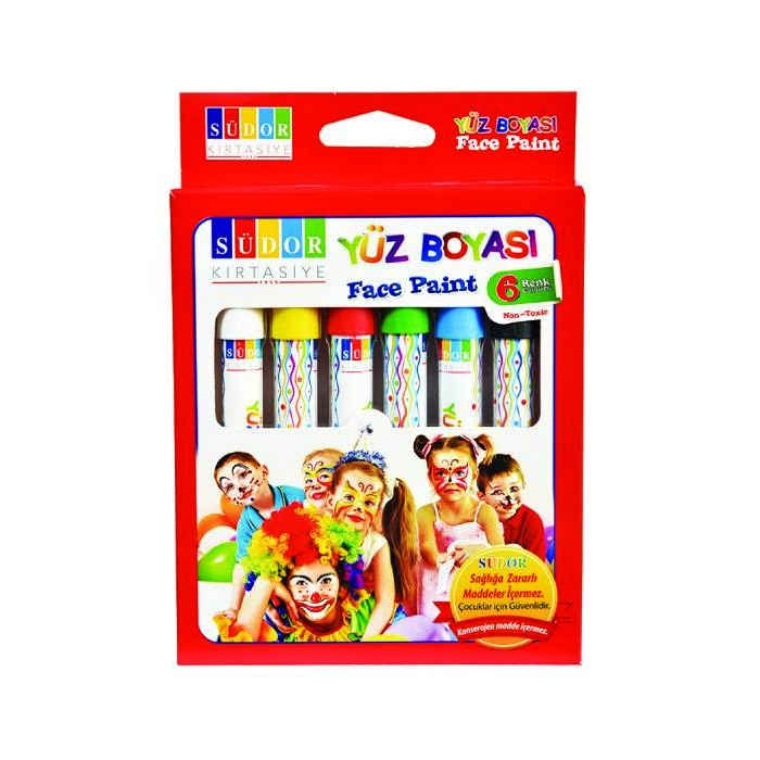 Yüz Boyama Kalemi 6 Renk Südor Marka ( Beyaz,Sarı,Kırmızı,Mavi,Yeşil,Siyah )