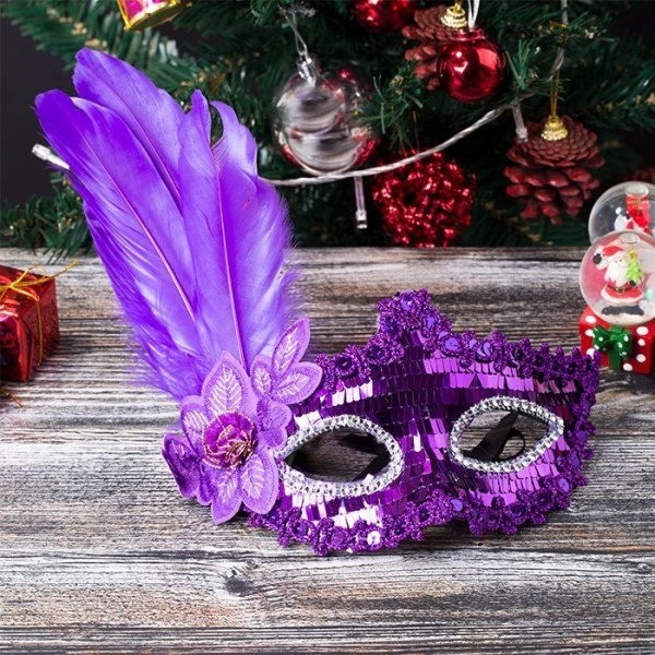 Pullu Parti Maskesi Mor Renk Tüylü