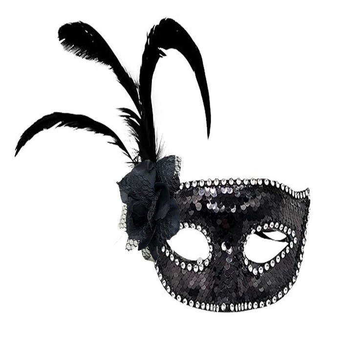 Pullu Parti Maskesi Siyah Renk Güllü Yandan Tüylü