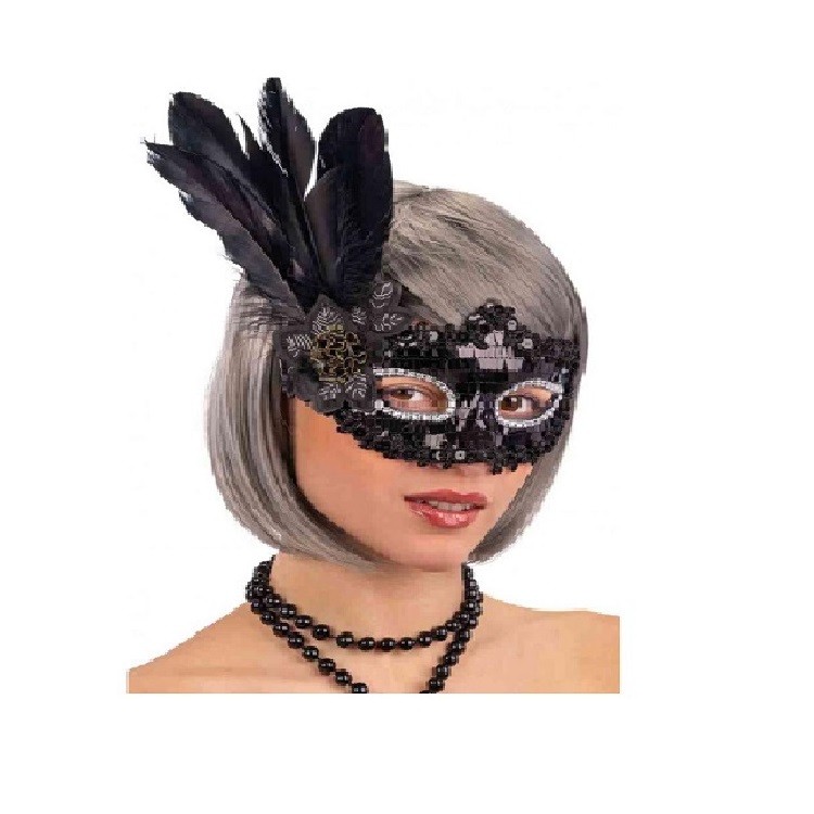 Pullu Parti Maskesi Siyah Renk Tüylü