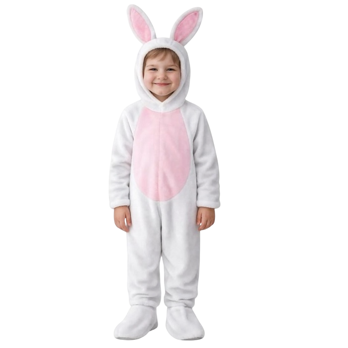 Tavşan Kostümü Tulum Şeklinde Kapüşon Kuyruk Monteli