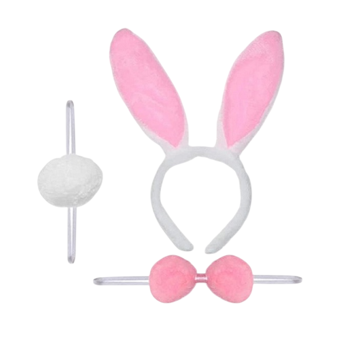 Tavşan Taç Papyon Kuyruk Seti Pembe
