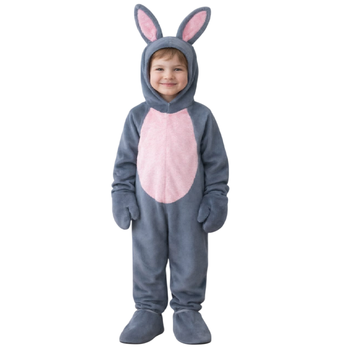 Tavşan Kostümü Tulum Şeklinde Kapüşon Kuyruk Monteli