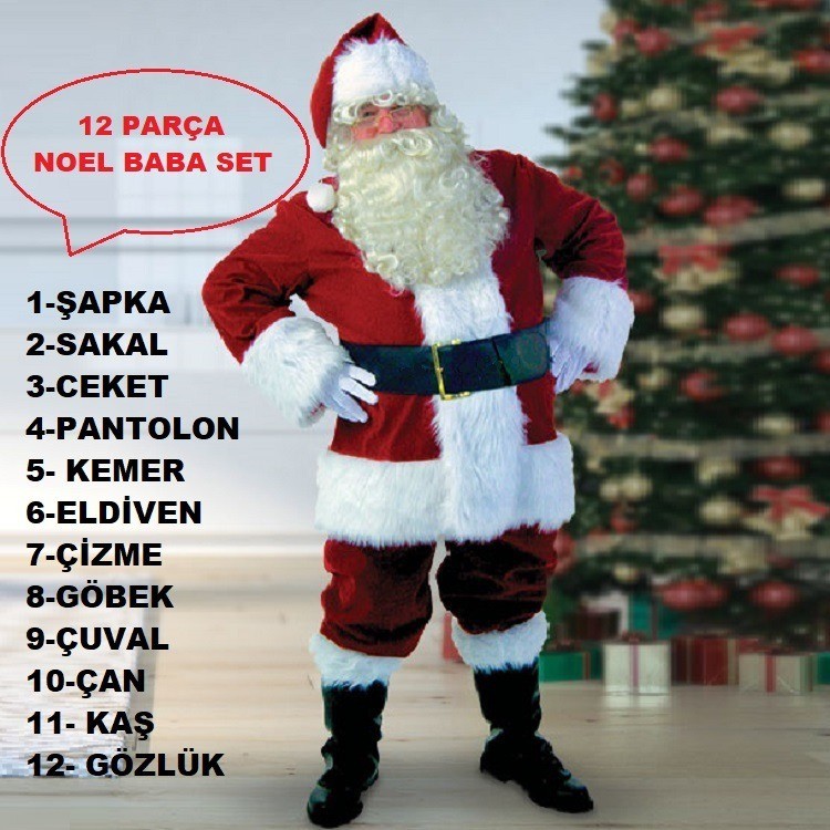 Noel Baba Kostümü Kadife Lüx 12 Parça Set