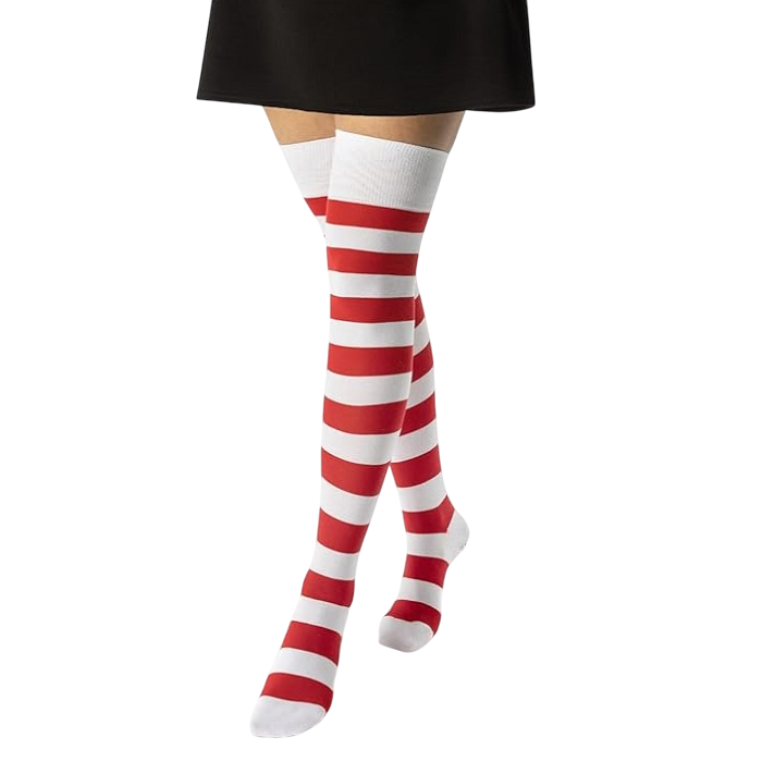 Kırmızı Beyaz Çizgili Diz Üstü Çorap