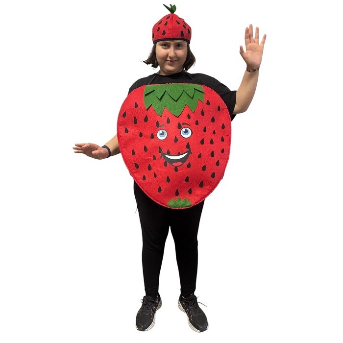 Çilek Kostümü Boyun ve Bel Kısmından Lastikli Bağlama Aparatlı
