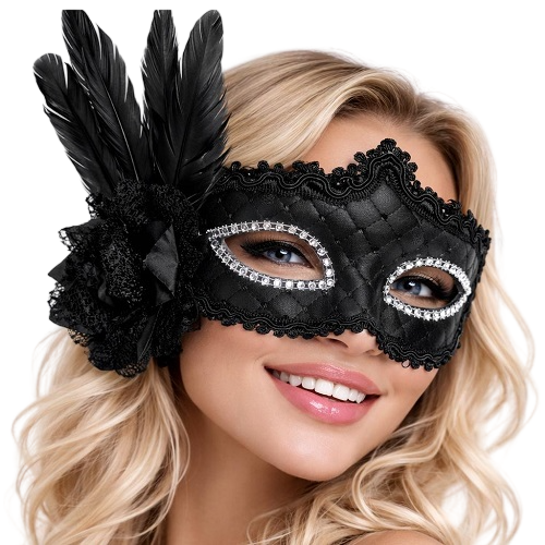 Siyah Tüylü Venedik Lüks Balo Maskesi