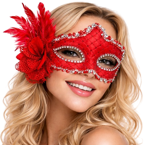 Kırmızı Tüylü Venedik Lüks Balo Maskesi