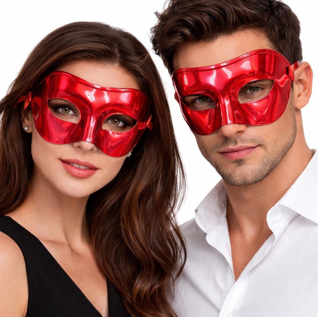 Metalize Parlak Venedik Balo Maskesi Kırmızı