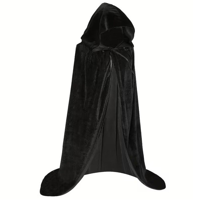 Kapüşonlu Kadife Pelerin Siyah Çocuk