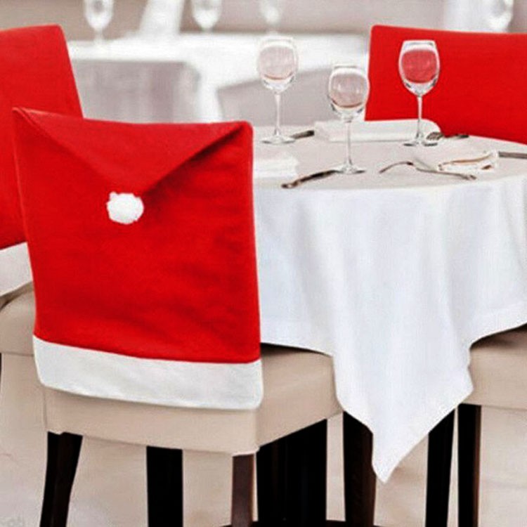Yılbaşı Sandalye Süsleme Noel Baba Şapkası Polar